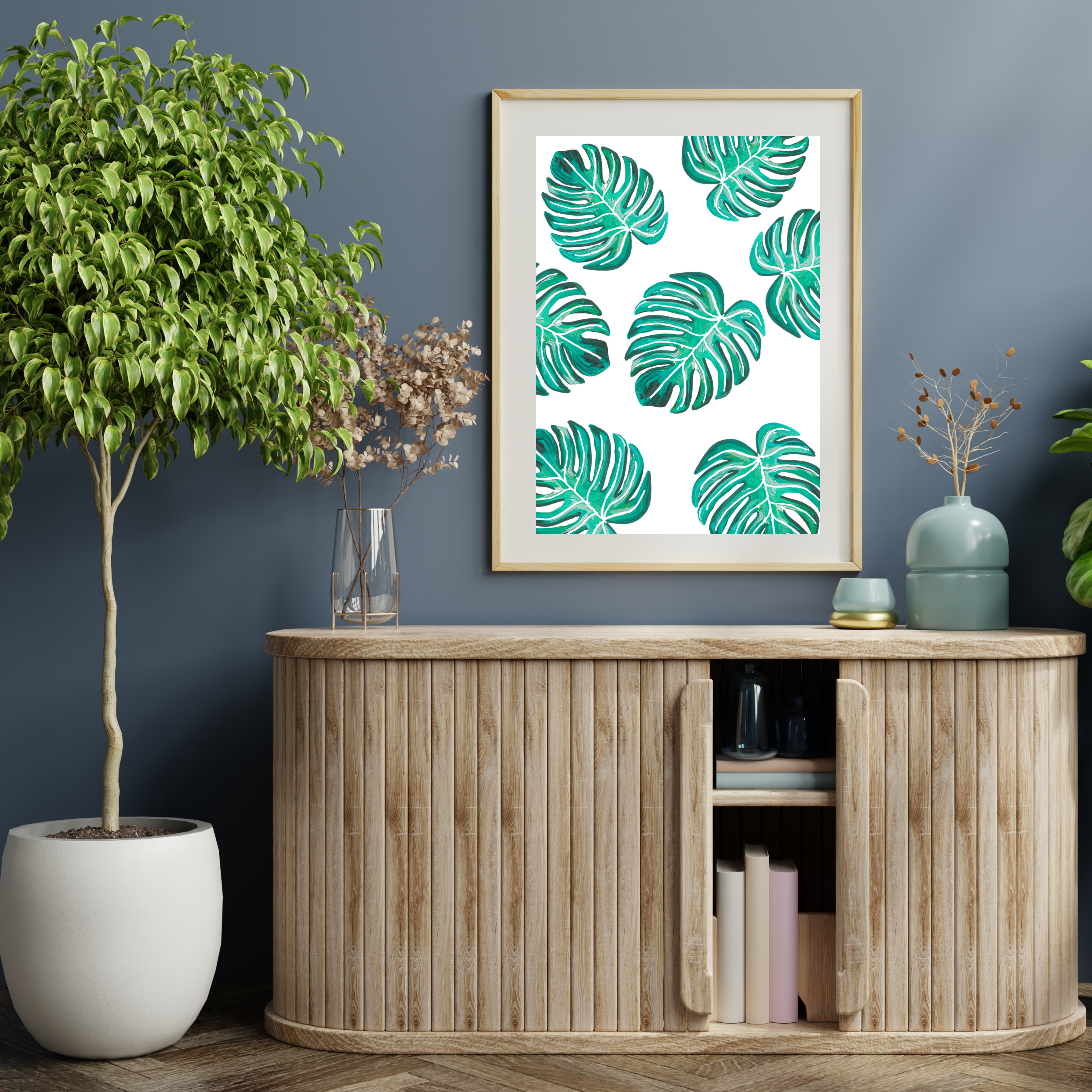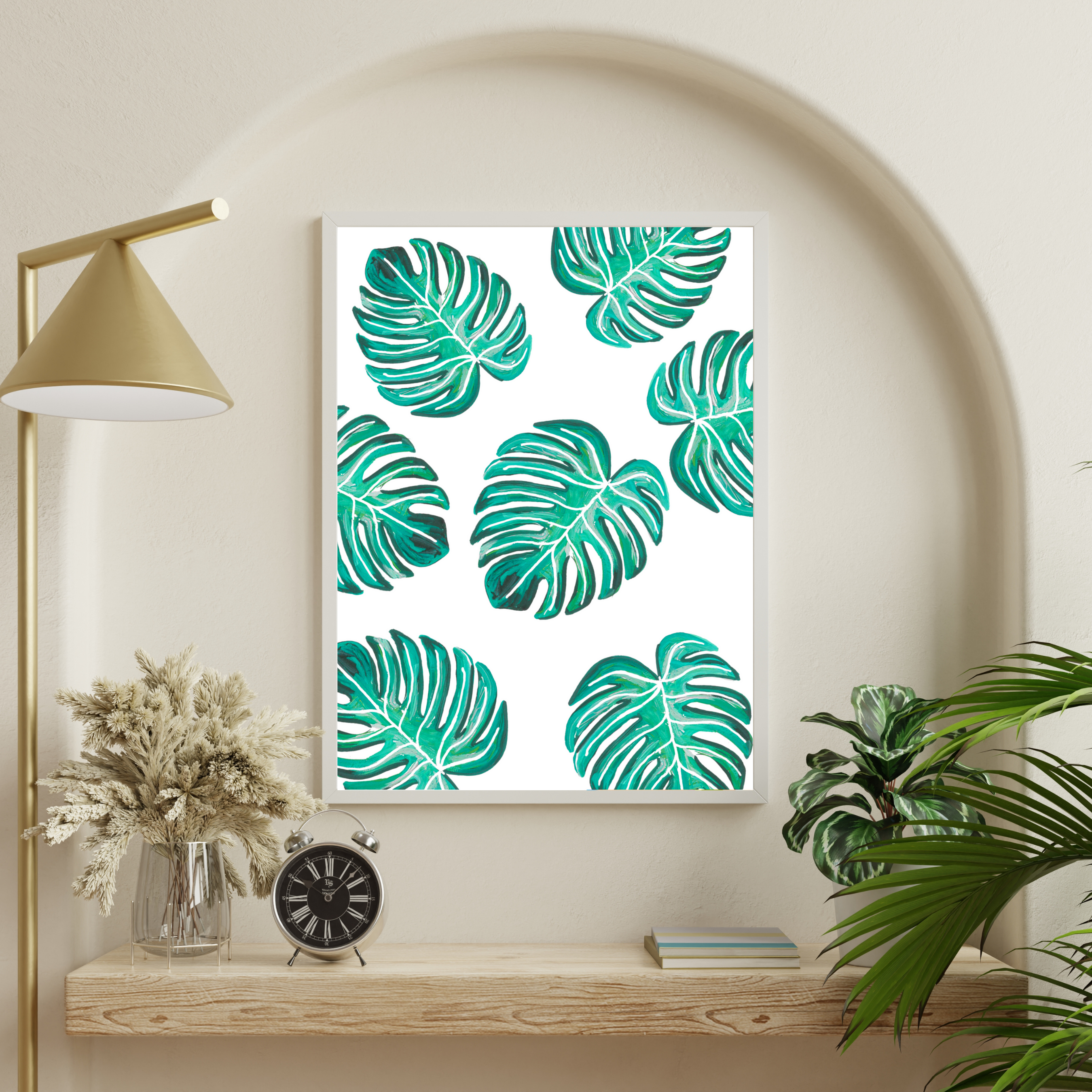 Green & White Monstera Collage art print